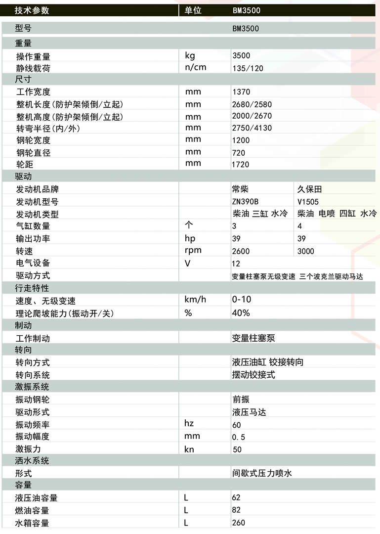 >> 新款3.5噸前鋼后膠座駕式壓路機BM3500